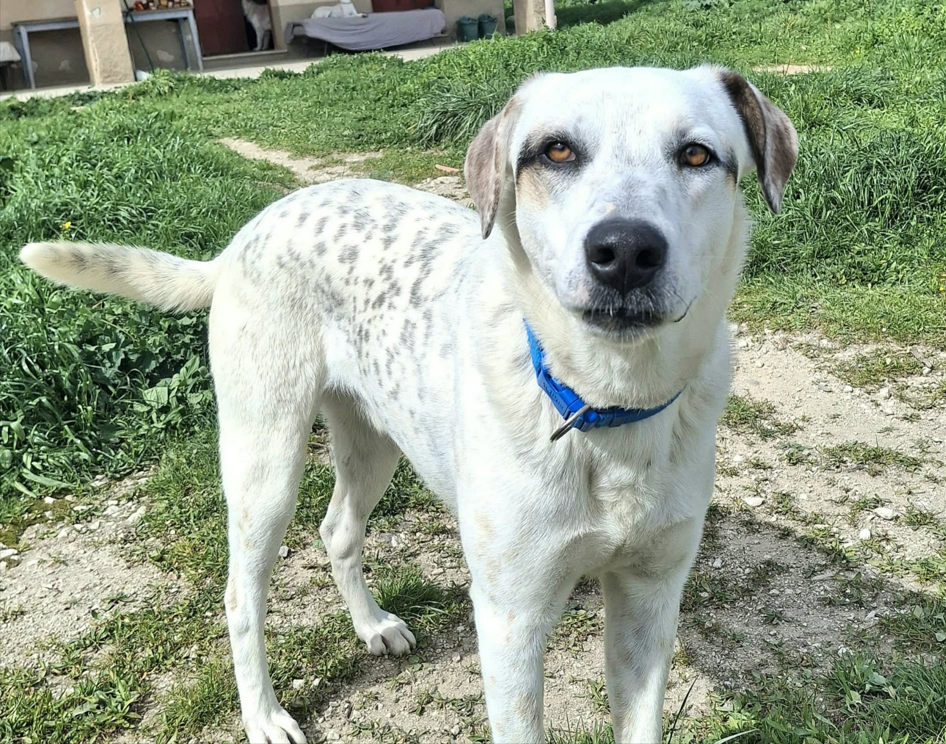 Blues si trova con noi in rifugio da tutta la vita. Abbiamo trovato lui e i suoi fratellini che avevano appena 10 giorni di vita, e lui è l’unico che da allora non ha mai ricevuto una richiesta di adozione. È un giovane adulto di circa 1 anno, pesa trenta chili è in perfetta salute ed è compatibile con tutti i cani, sia maschi che femmine, ma non con i gatti.