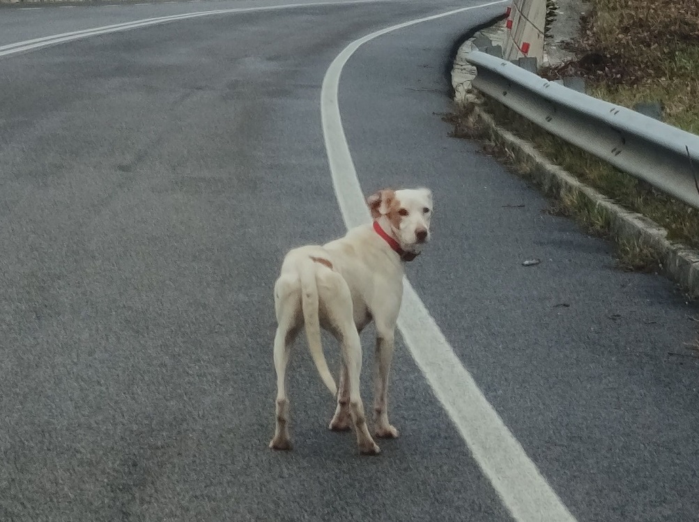 La signora Tiziana segnala cane sulla superstrada ore 12:20, dopo Borgo San Pietro direzione Rieti. Corre in mezzo strada e rischia di essere investito. Tiziana si è fermata , il cane si è avvicinato alla macchina, lei ha provato a prenderlo, ma è troppo impaurito e scappa. Ha collare. Qualcuno lo riconosce?