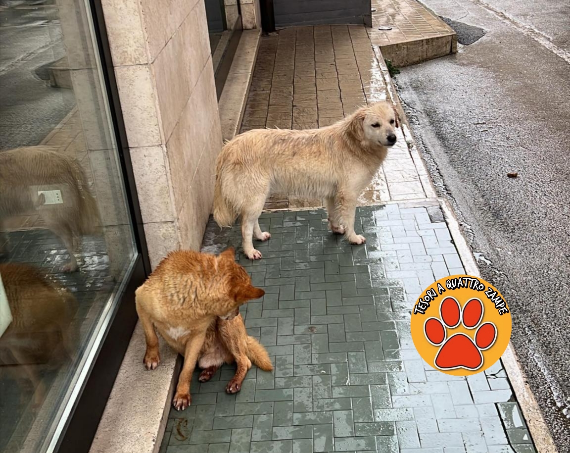 Segnalati intorno alle 11:45 di stamane, sabato 14 febbraio, i due cani in foto. Sono zuppi di acqua e vagano da soli in strada: di chi sono?
