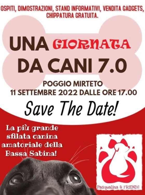 Anche per l’edizione 2022 Tesori a quattro zampe sarà il media partner dell’evento “Una Giornata da Cani”, che si terrà a Poggio Mirteto domenica 11 settembre, dalle ore 17, organizzato dall’Associazione Pasqualina & Friends.